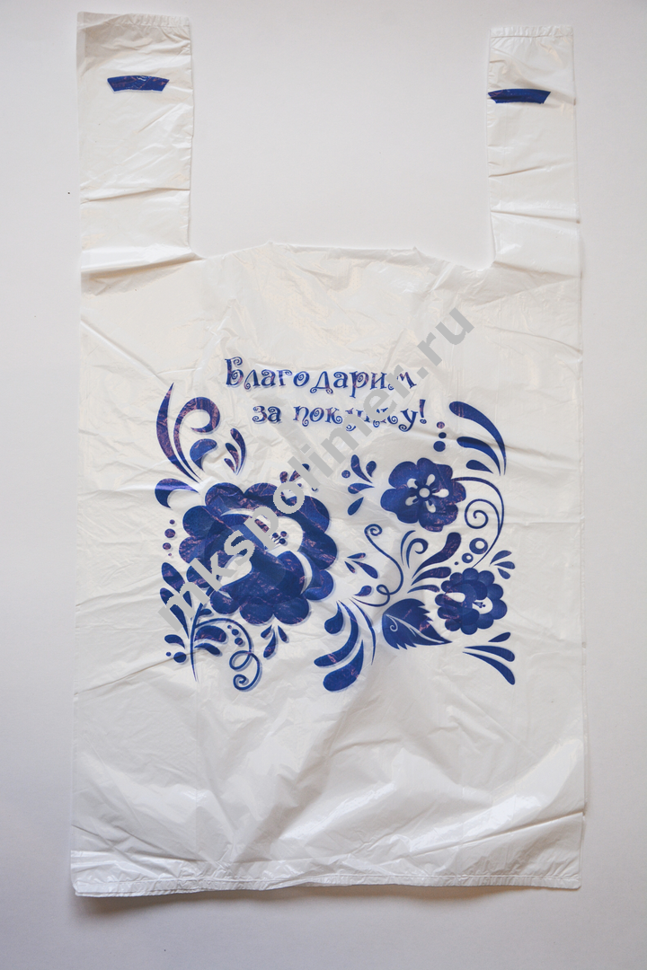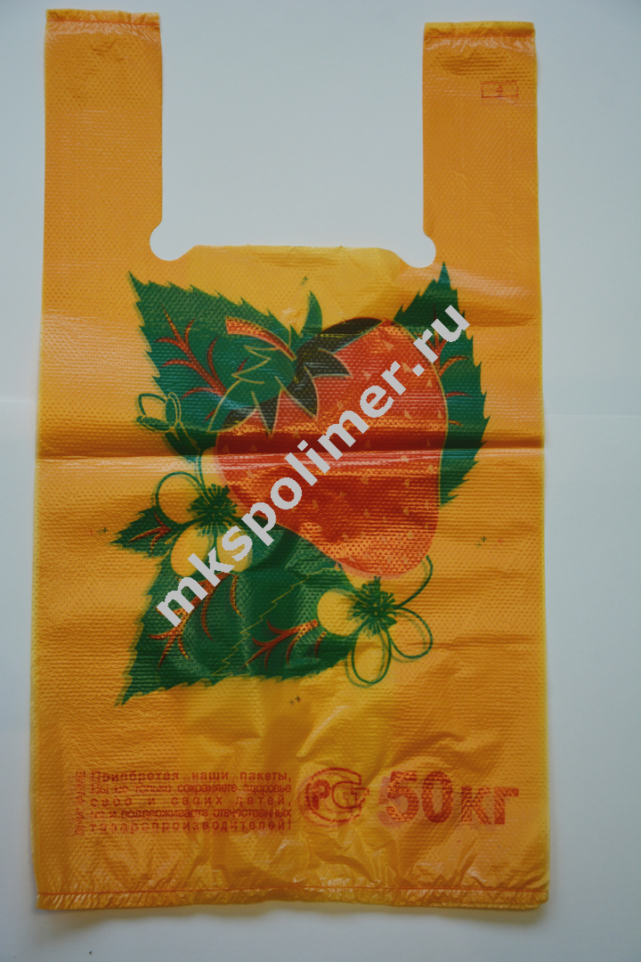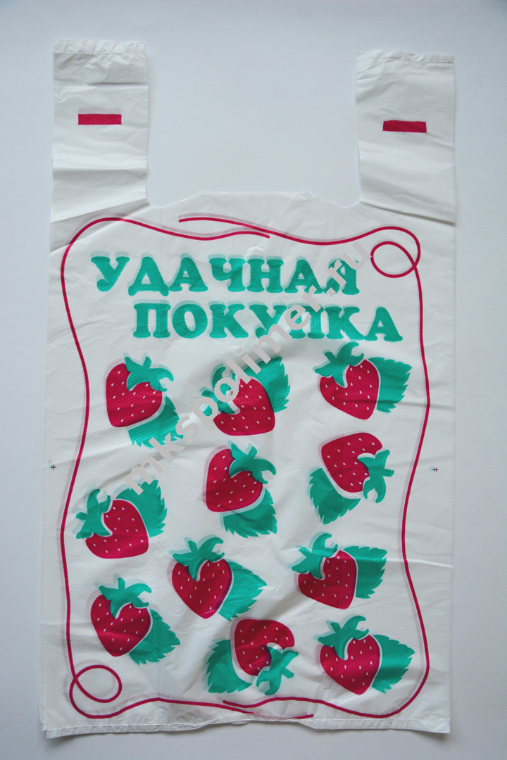 Пакет «Майка» из полиэтилена может быть как без рисунка (белого или любого насыщенного цвета), так и с нанесением рисунка, надписи ( «Логотип Вашей компании»,«Спасибо за Покупку!», новогодняя тематика, фрукты и овощи, и многое другое).
